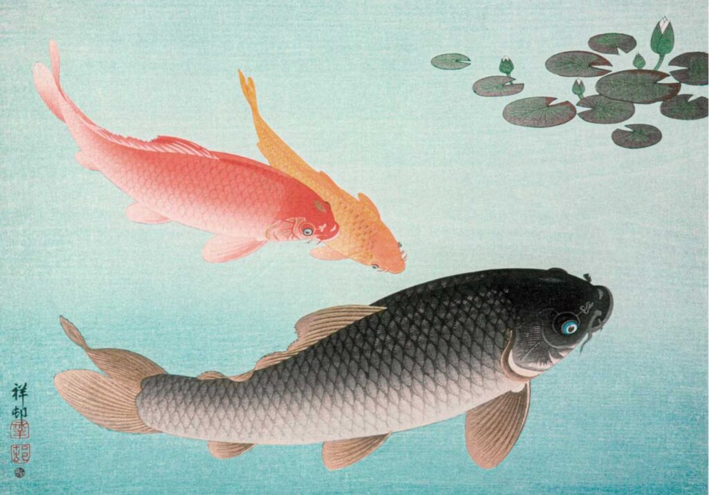 日本では古くから人々の生活や文化と深く結びつき、絵画の題材や食文化として親しまれてきました。改良品種であるニシキゴイは観賞魚として世界的に知られ、鯉のぼりや「鯉の滝登り」に象徴されるように、立身出世や吉兆の象徴ともされています。実際に滝を登ることはありませんが、川面を跳ねる行動は寄生虫を振り払うためと考えられており、その姿は今も人々に強い印象を与えています。