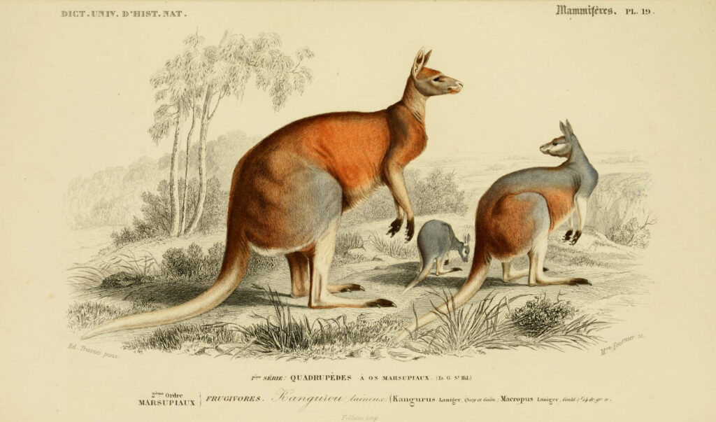 カンガルーはエミューとともにオーストラリアの国章に描かれています。カンガルーは体の構造上後ろに下がることができないので、「前進あるのみ」との意味を込められています。
